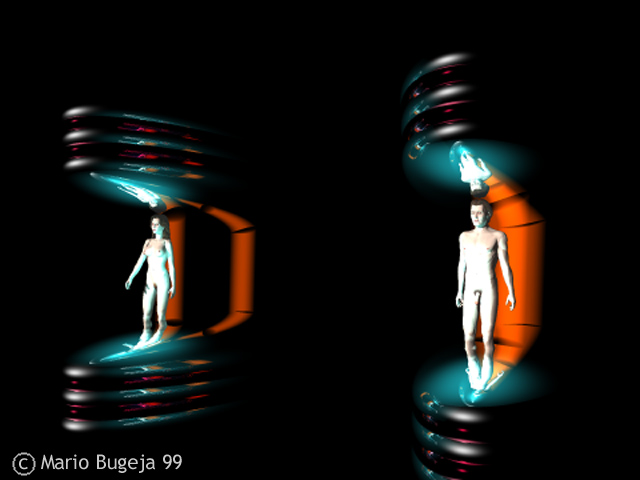 This picture, plays upon the notion of humans being created or even manufactured by an intelligent, and advanced alien race. As you can see, the mother and father of all humanity.... Adam and Eve. Everything was modeled in Bryce3d, except for the two poser figures.... Obviously.... |